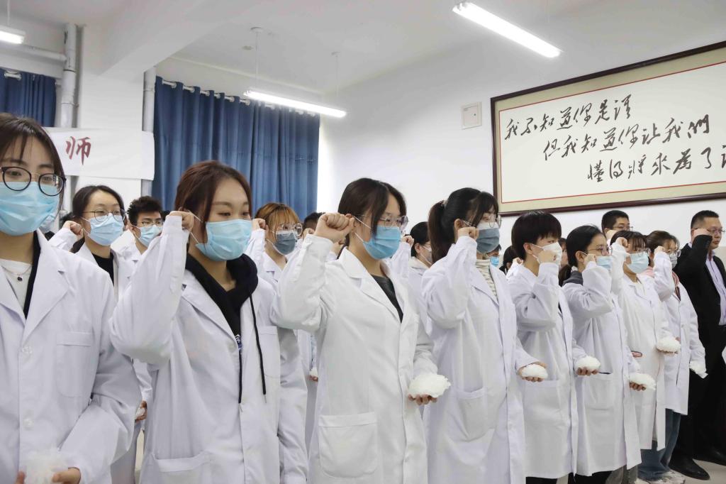 全体师生为“无言良师”献花并鞠躬致敬,在宣传板上张贴感恩贴。一束束白色的花朵,一次次由衷的鞠躬,一句句感恩的言语,诠释着别样的人间仁爱,寄托着伟大的师生恩情,赞颂着医学的高尚与圣洁。