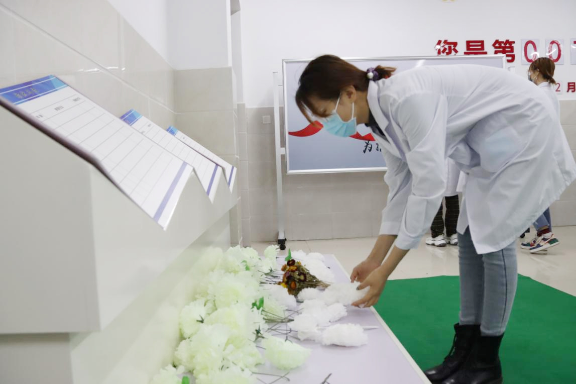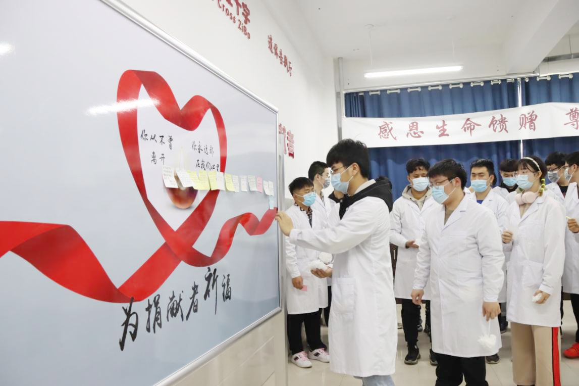 全体师生为“无言良师”献花并鞠躬致敬,在宣传板上张贴感恩贴。一束束白色的花朵,一次次由衷的鞠躬,一句句感恩的言语,诠释着别样的人间仁爱,寄托着伟大的师生恩情,赞颂着医学的高尚与圣洁。